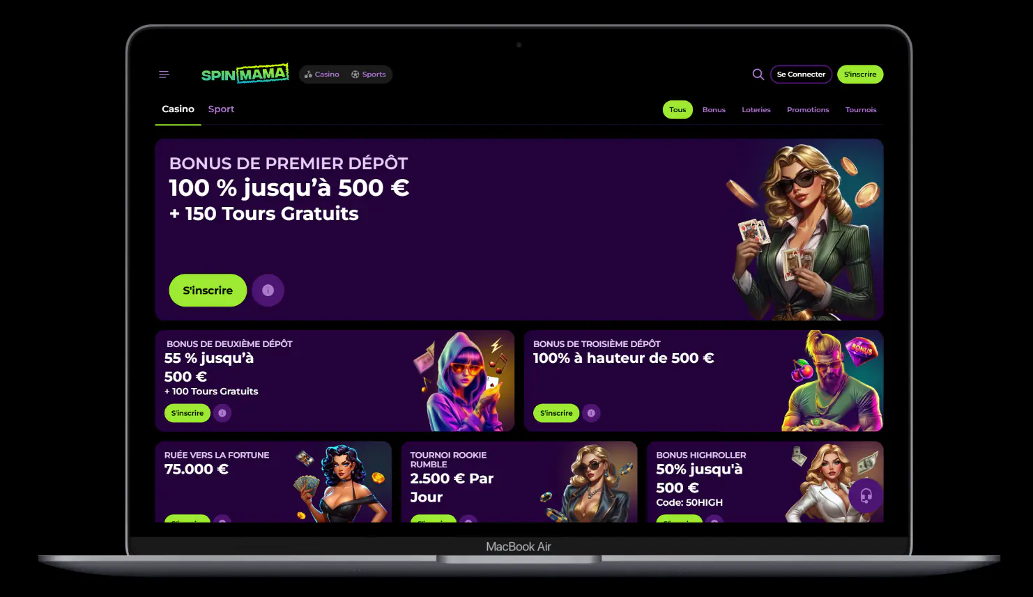 Nous avons sur SpinMama bonus code un club VIP exclusif dédié aux joueurs réguliers. Pour intégrer ce club, vous devez obtenir des points de loyauté en jouant à nos jeux, en faisant des dépôts et retraits, etc. Notre club VIP SpinMama bonus code est composé de plusieurs niveaux (bronze, argent, or et diamant). Chaque niveau SpinMama bonusco possède ses propres avantages (cashbacks, gestionnaire de compte, bonus de recharge, code promo, etc). Il faut aussi souligner que nous organisons régulièrement des tournois casino. Ces tournois sont des compétitions ou le Casino SpinMama récompense les meilleurs joueurs. En général, ces tournois concernent nos nouveautés en termes de jeux; alors activez la cloche de notification pour ne pas les manquer.